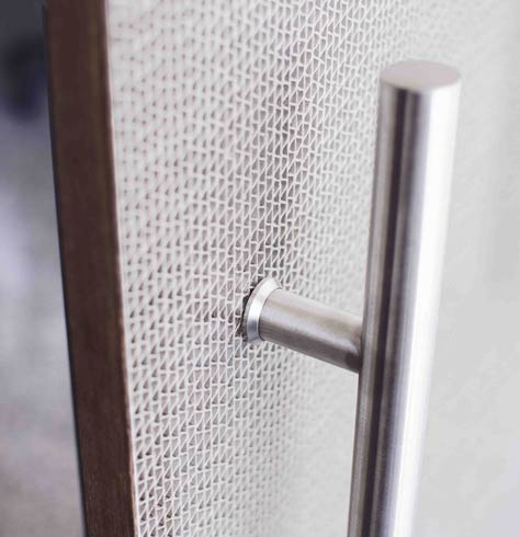 Sustainable composite material for architecture and design made of a core of recycled cardboard and 100% recycled and recyclable green cast acrylic skins. Ecoben Collection can be used for dividing walls, doors, tables, shelves and many other applications in interior design forniture which have a natural focus on natural raw materials and recycled products.