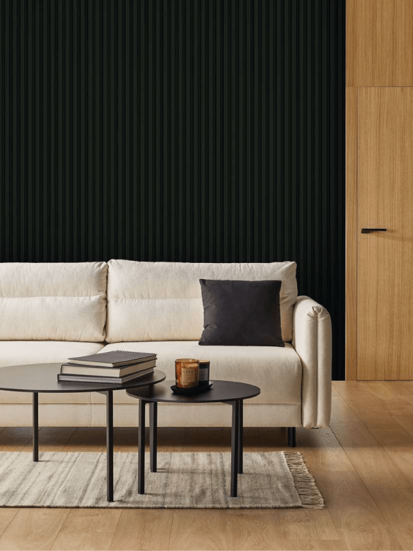 Linerio Slat Panels are a perfect choice for those who are looking for a practical and decorative way to finish a wall. They are ideal for marking different zones in a room or accentuating a small part of it, e.g. a wall behind a desk or a recess in a hallway. The product has a low weight. It can therefore be used in places where the use of heavier wall panels is not possible.